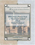 | WHEN DOES A PATIENT NEED A "FUNCTIONAL ANALYSIS" OF THEIR DENTAL OCCLUSION? Diagnostic mounted models are one of the most valuable, yet underutilized, aids that a dentist has available for evaluating a patient's dental occlusion. This pamphlet describes when this diagnostic procedure should be considered to obtain accurate records. |