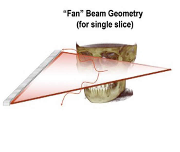 During a CBCT scan, the scanner rotates around the patient's head, obtaining up to nearly 600 distinct images. The scanning software collects the data and reconstructs it, producing what is termed a digital volume composed of three dimensional voxels of anatomical data that can then be manipulated and visualized with specialized software.