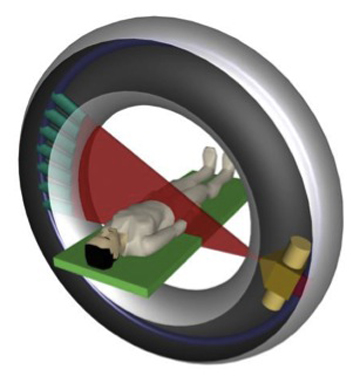 Computed tomography (CT) uses a narrowly collimated beam of x-rays that rotates in a full arc around the patient to produce an image of detailed cross-secional slices. A major advantage of CT is its ability to image bone, soft tissue and blood vessels all at the same time. An array of detectors, positioned at several angles, records those x-rays that pass through the body. The image is created by a computer that calculates tissue absorption and can produce three dimensional reconstructed images representing tissues that demonstrates the densities of the various structures. CT is less sensitive to patient movement than MRI. CT can be performed if you have an implant medical device of any kind, unlike MRI.
